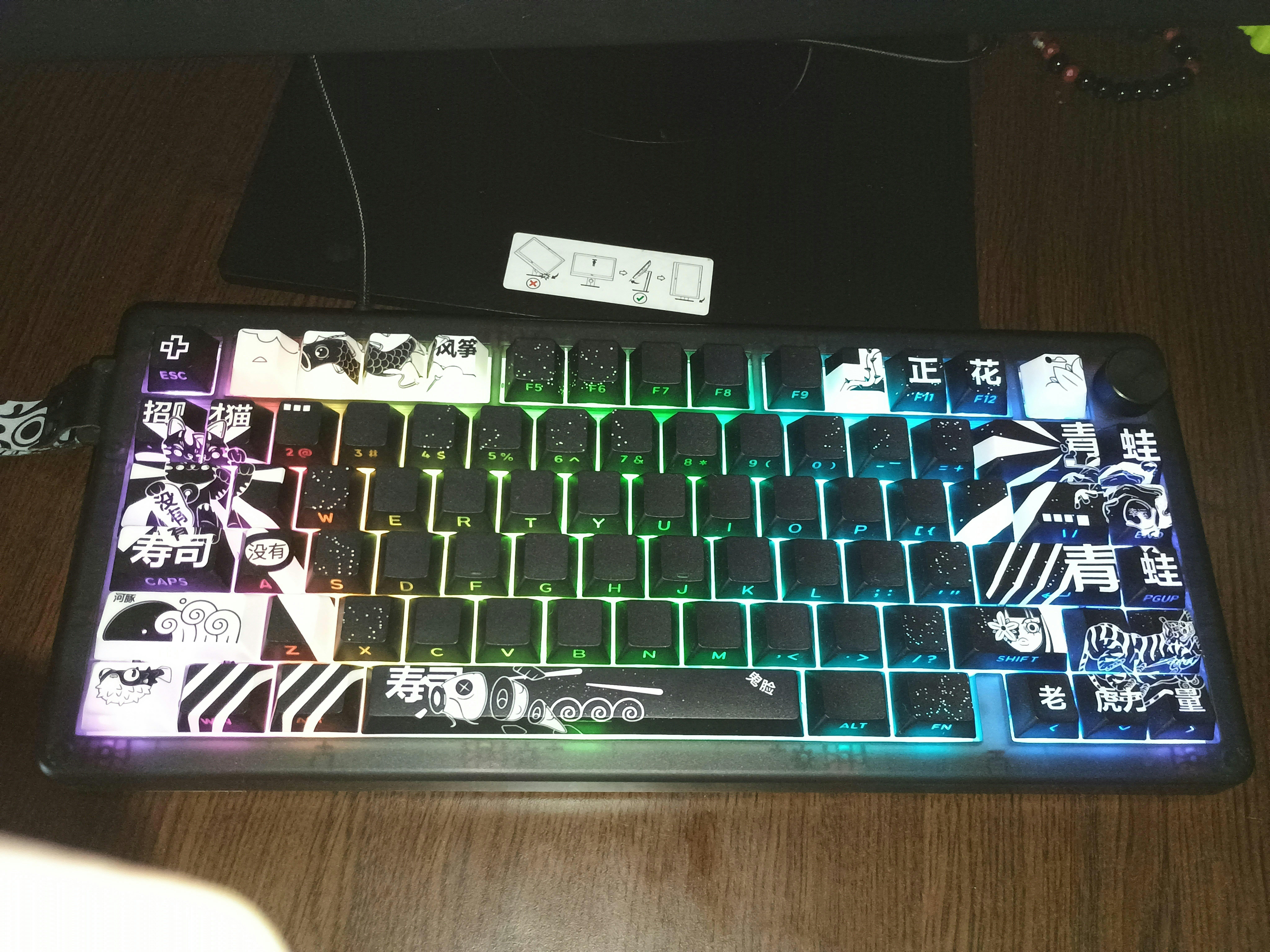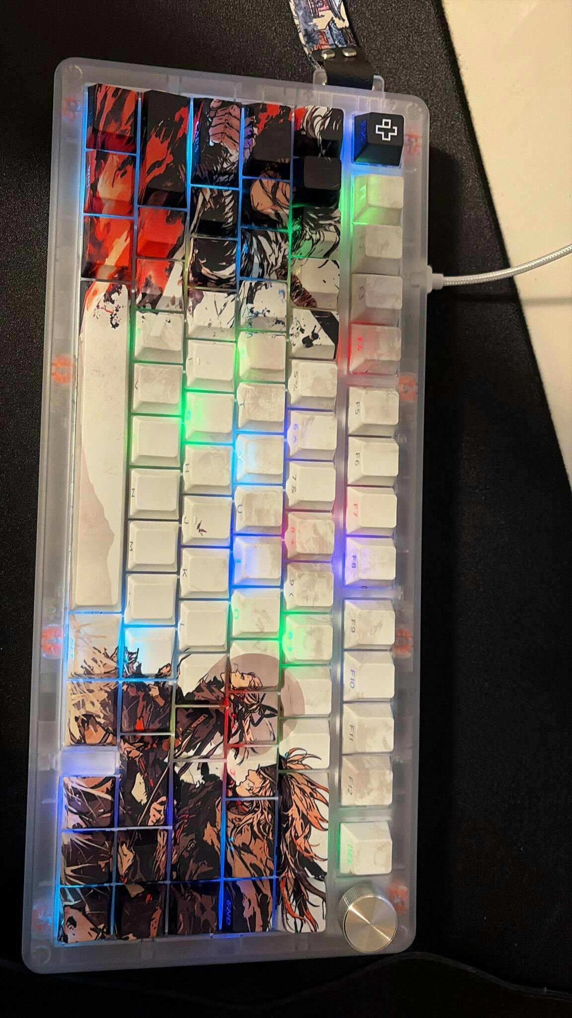 - PBT Dye-Sub Keycaps – Cherry Profile with side legends – Durable, wear-resistant PBT keycaps with legends applied via thermal sublimation. Side legends for a clean aesthetic and subtle lighting.