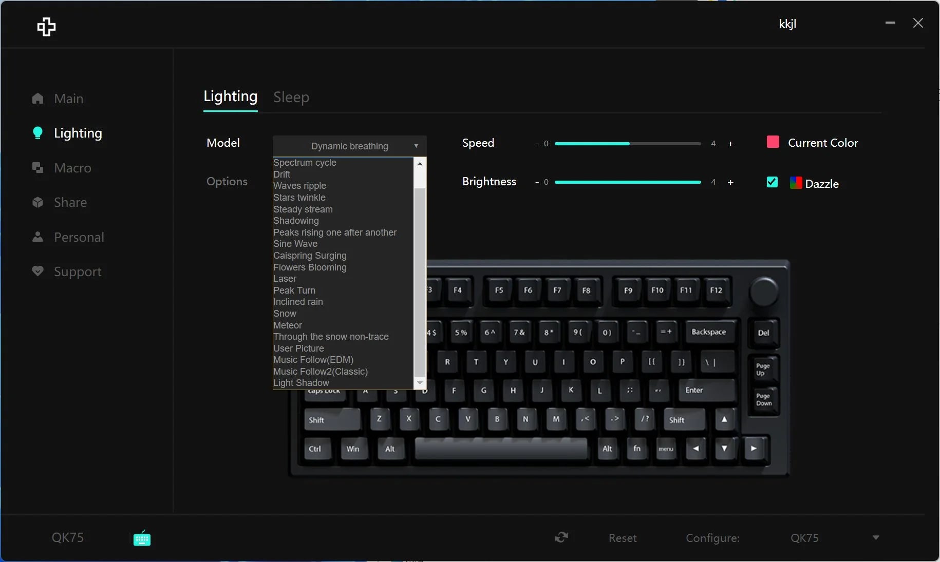 Можеш да програмираш Knob-а така, както желаеш, използвайки личния софтуер QwertyKey75. Яркост, Обем и така нататък. Бъди креативен!