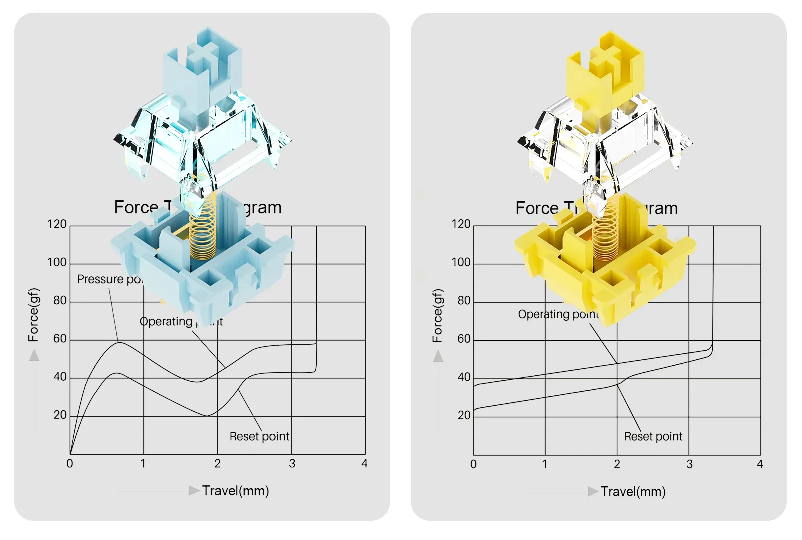 Switches предварително смазани директно на клавиатурата. Също така, теглото на пружината от 55g за най-добра точност, когато става въпрос за игри и не само. Слушай звуковия тест!