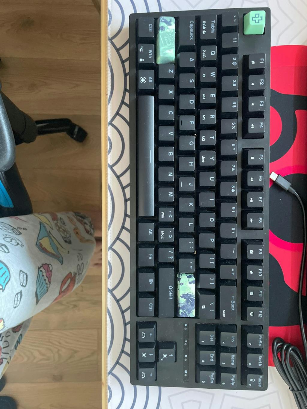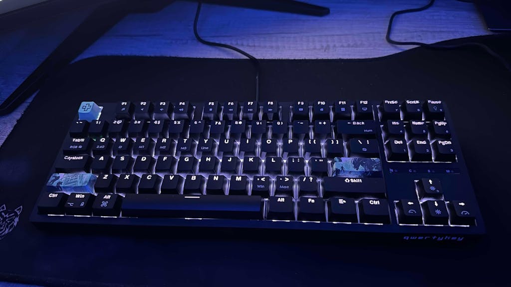 Основните клавиши са от ABS Double Shot с легенди shinethrough, позволяващи RGB осветлението да блести ясно през клавишите през нощта. Клавиатурата включва и 3 клавиша PBT dye-sub custom за персонализиран щрих и уникален вид. -