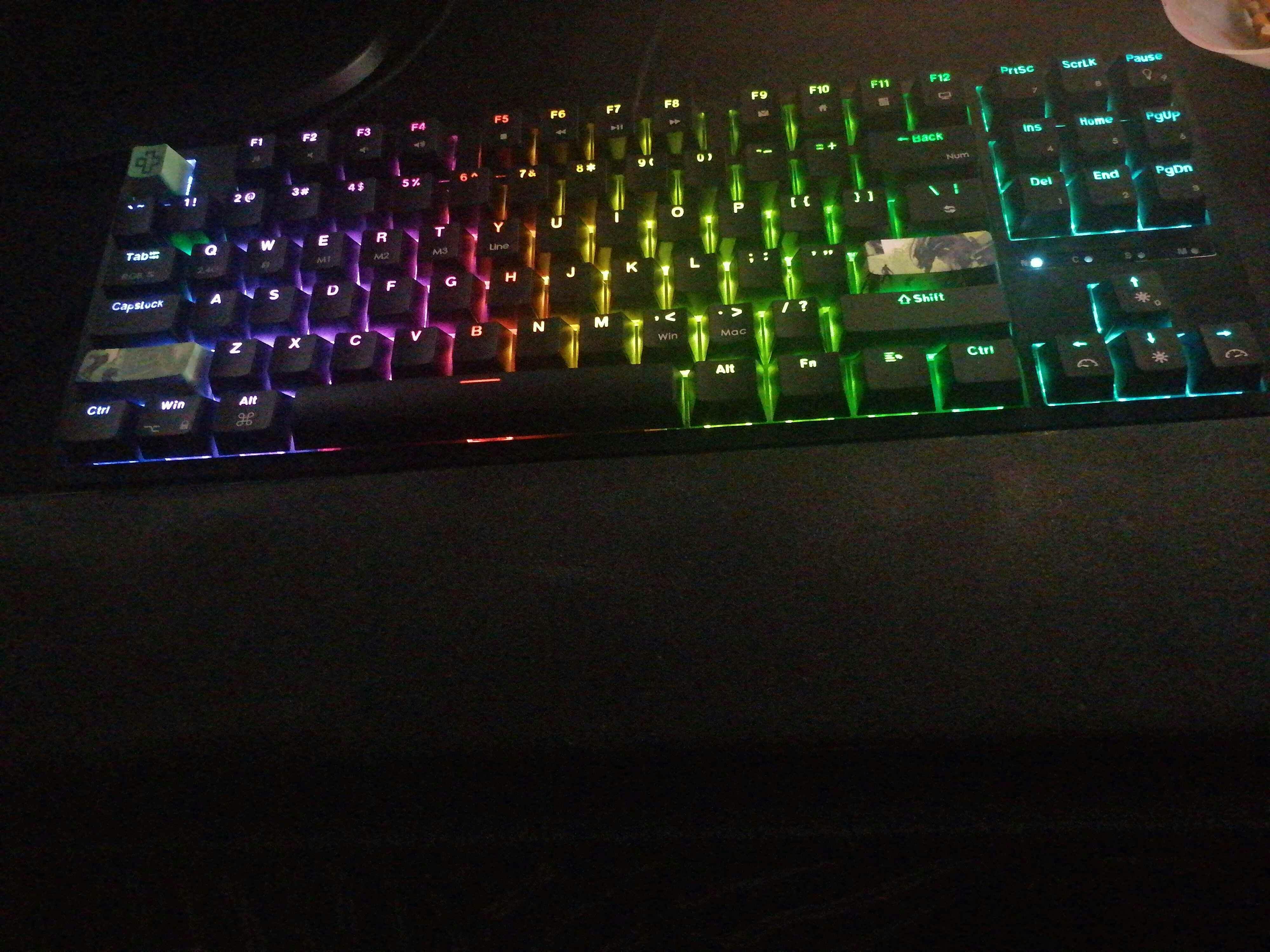- Tastenmaterial – ABS Double Shot mit shinethrough-Beschriftung: Die Haupttasten bestehen aus ABS Double Shot mit shinethrough-Beschriftung, sodass die RGB-Beleuchtung nachts klar durch die Tasten scheint. Die Tastatur enthält außerdem 3 kundenspezifische PBT dye-sub-Tasten für eine persönliche Note und ein einzigartiges Aussehen.