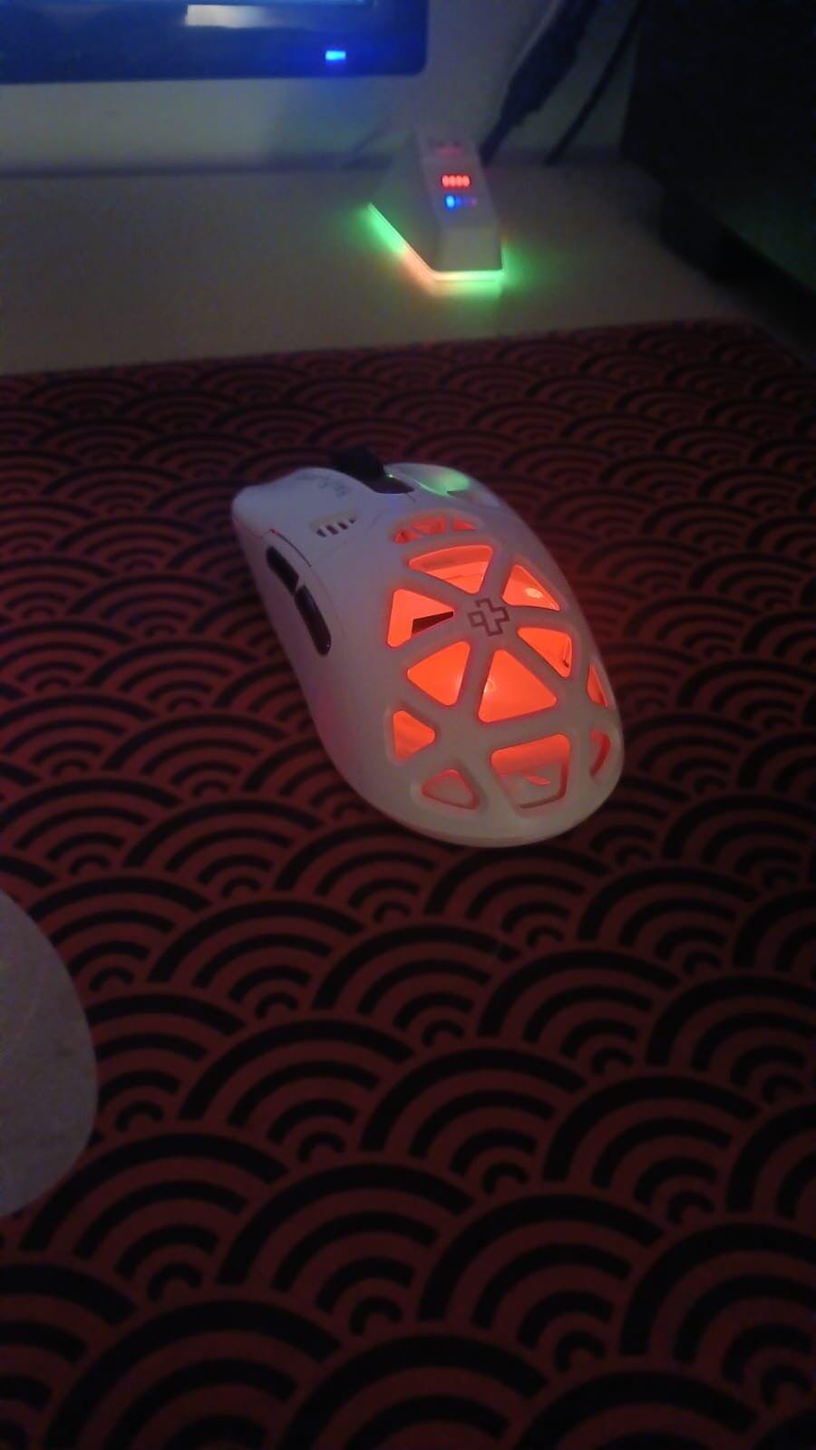 Mouse-ul include un charging dock care iti permite sa incarci mouse-ul mai usor, si care are si functia de dongle wireless. El iti permite sa vizualizezi si nivelul bateriei si al DPI-ului.