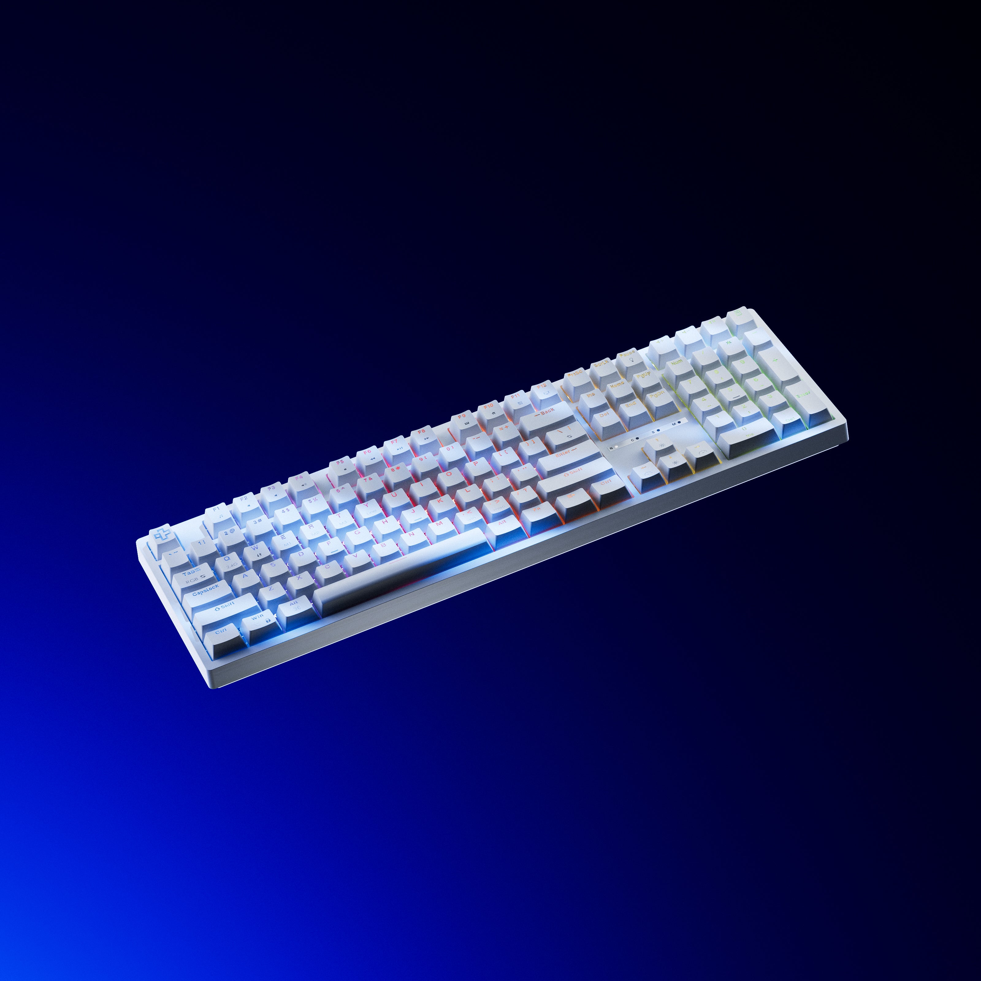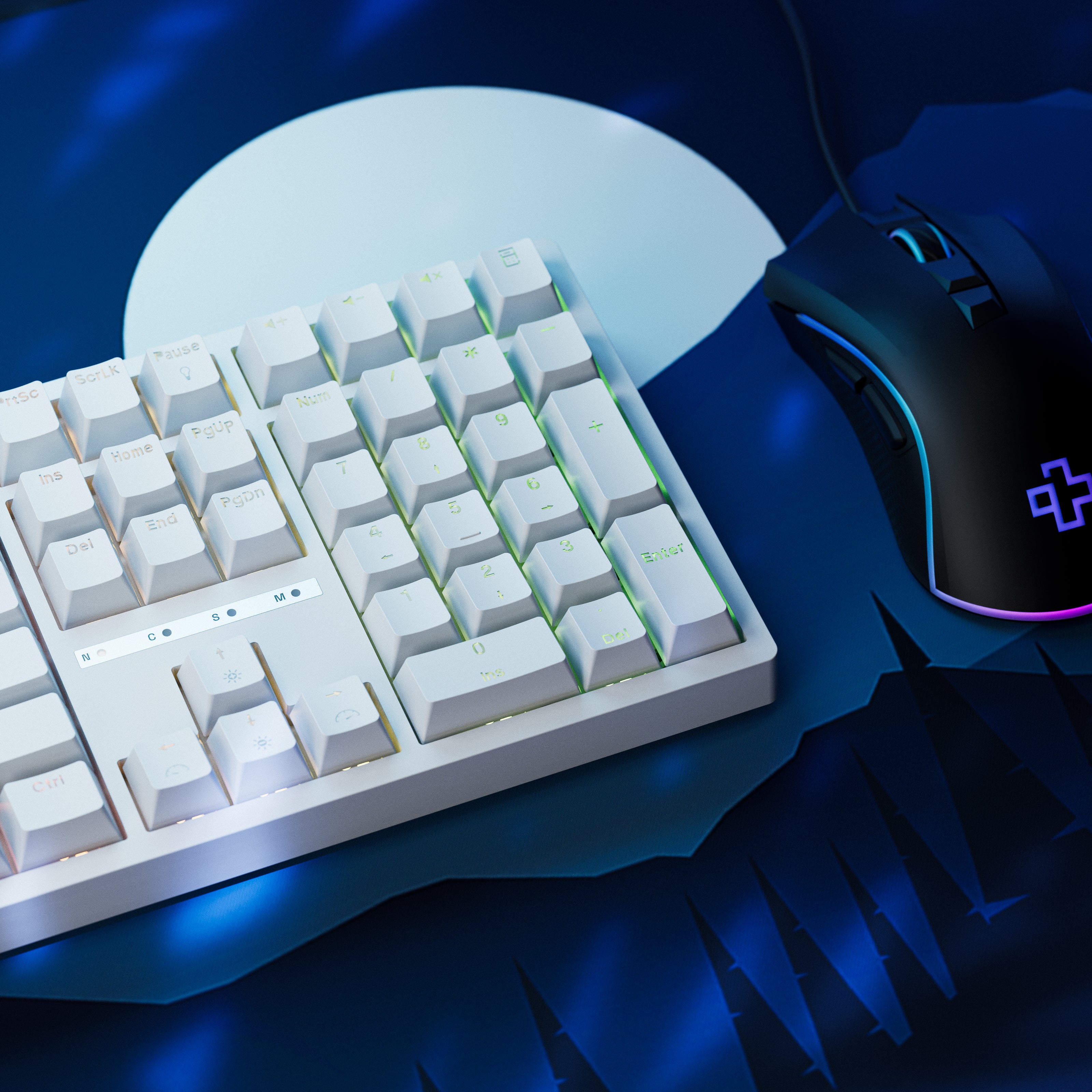 Las teclas están hechas de ABS Double Shot, permitiendo que la iluminación RGB brille claramente a través de las leyendas, ideales para sesiones nocturnas.
