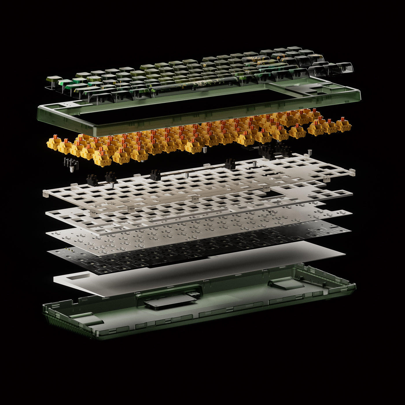 Gasket Mount: Dit toetsenbord maakt gebruik van een gasketmontagesysteem, waarbij de PCB wordt gemonteerd met zachte gaskets die deze dempen tegen de behuizing. Dit ontwerp biedt een zachtere typervaring en verbetert de akoestiek door trillingen te verminderen.