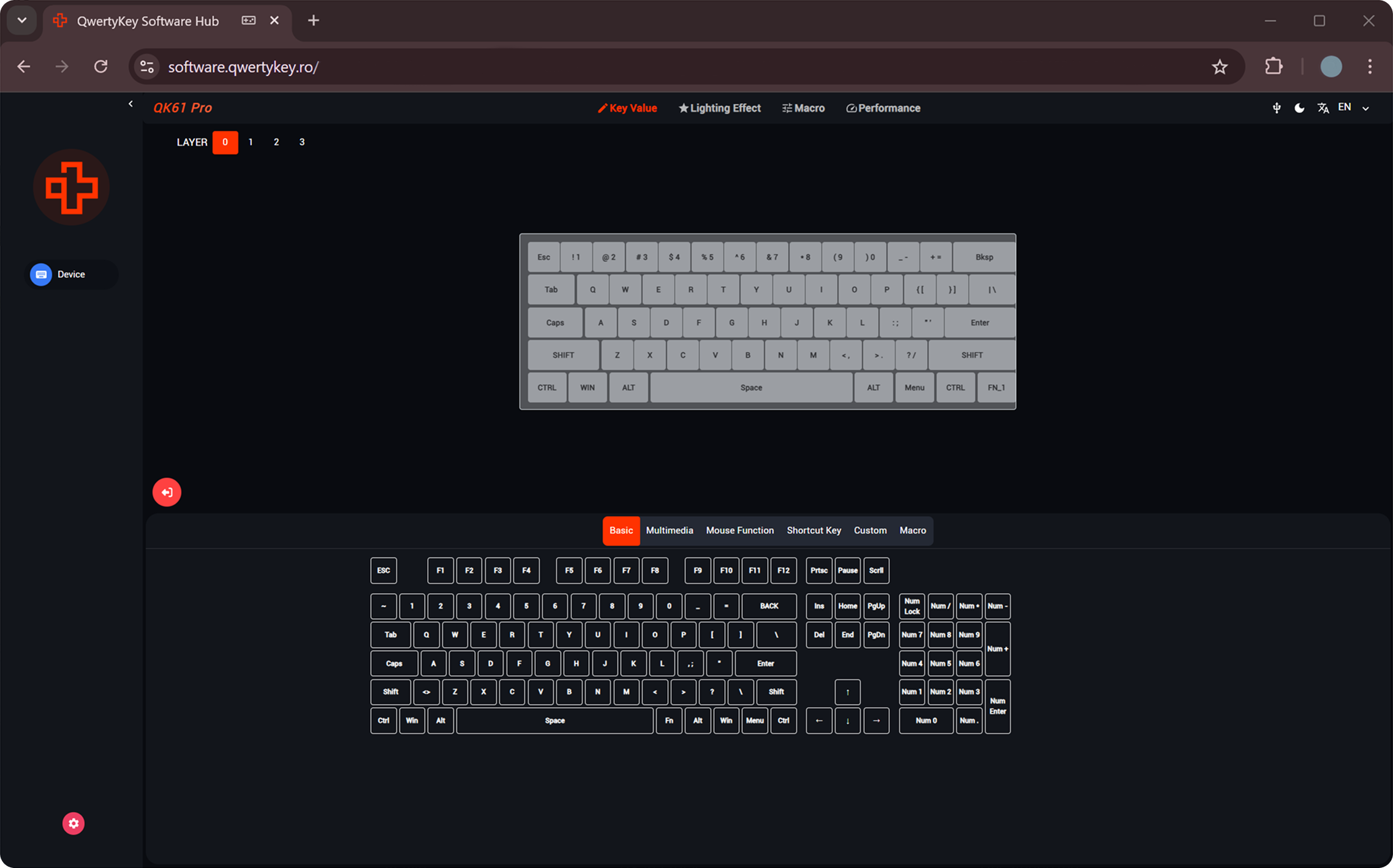 Configurează tastatura direct din browser, fără instalări sau update-uri. Acces instant la maparea tastelor, macro-uri, iluminare RGB și profiluri personalizate.