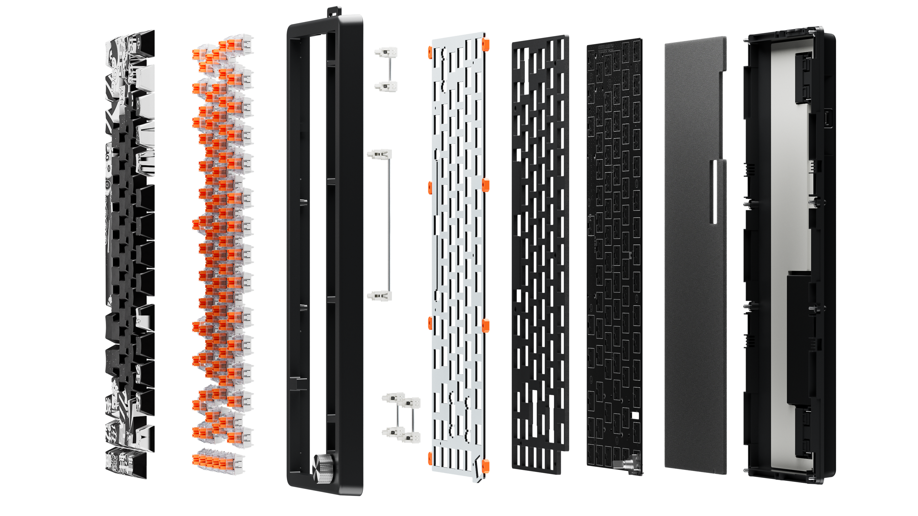 The mounting plate is made from FR4, a material used in electronic circuits for its rigidity and durability. It delivers a clean and controlled sound, reducing unwanted resonances and providing a solid typing feel. It's the ideal choice for a balance between performance and comfort.